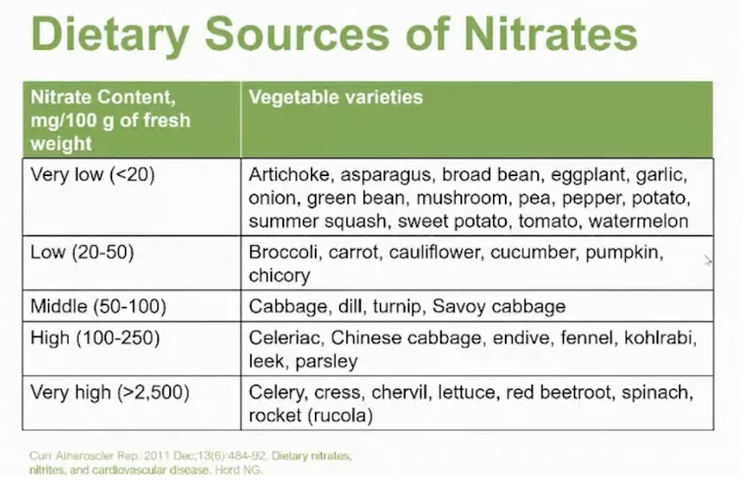 Nitrates, while in the mouth, convert by way of our saliva into nitrites which then converts to Nitric Oxide (in the stomach and blood vessels) which helps our blood vessels expand.